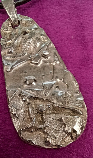 Recycled Sterling Silver Necklace, 2 inch Pendant with an 18-inch black cord, if you want to substitute the cord for a 18-inch sterling silver chain let us know.