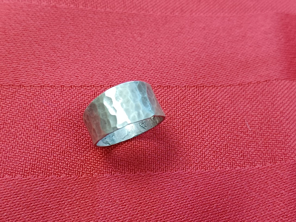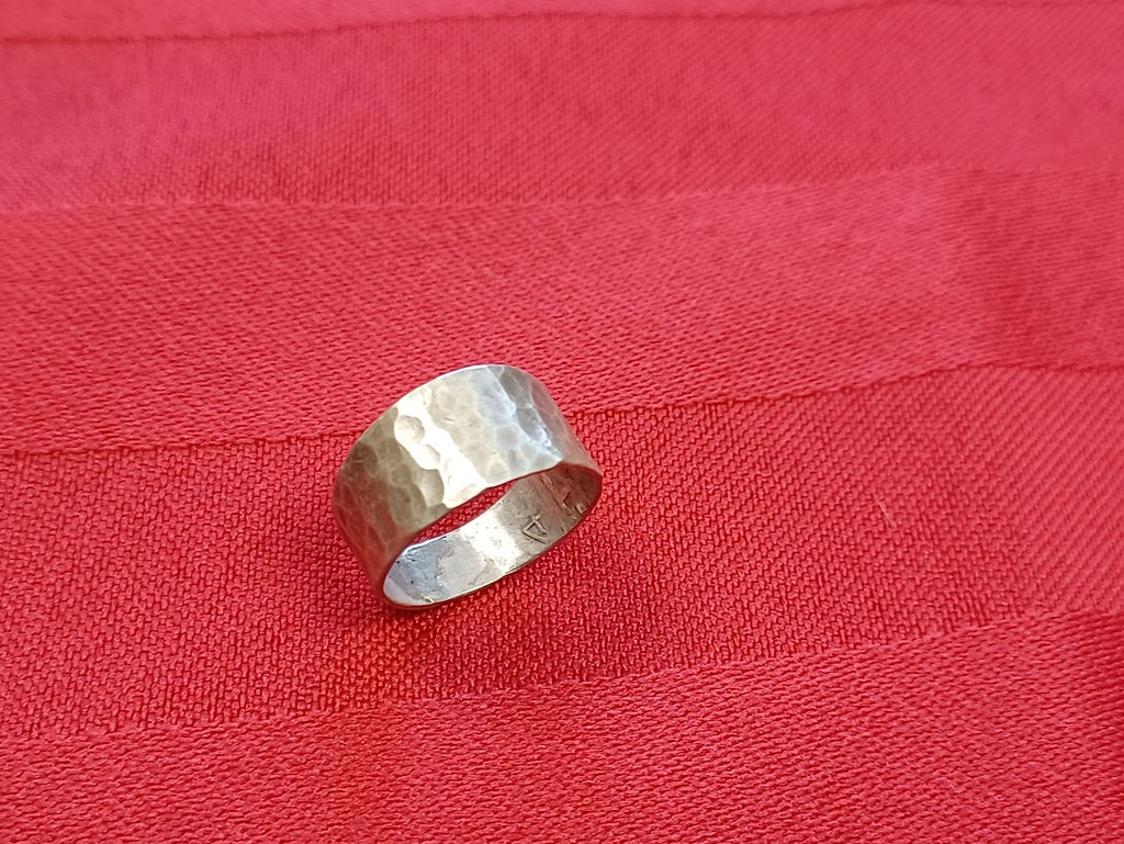 Handcrafted from sterling silver, this band showcases the distinctive texture of traditional hammering techniques. Each piece is individually crafted, ensuring subtle variations that reflect authentic artisanal work. The organic surface catches light beautifully, creating depth and movement on the finger. Available in standard sizes, with custom dimensions accommodated upon request—simply send your preferred size and a reference image to info@athenasilversmith.com for a personalized option.