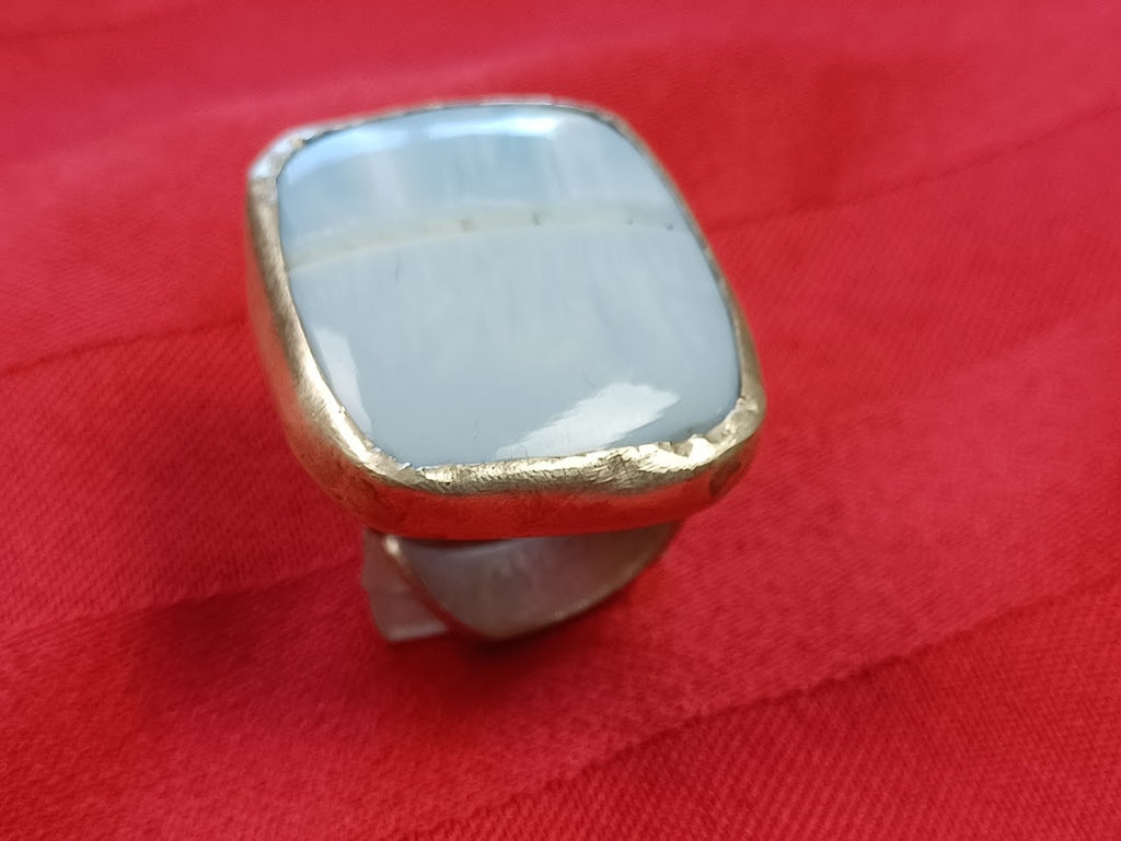 Sterling Silver Moonstone Ring featuring a commanding large square stone, meticulously handcrafted to showcase the stone's ethereal adularescence. Each piece combines traditional silversmithing techniques with the natural beauty of genuine moonstone, creating a distinctive statement ring. The substantial square cut maximizes the stone's luminous play of light, while the sterling silver setting ensures durability and timeless elegance. Perfect for those seeking authentic artisanal jewelry with understated sophistication.