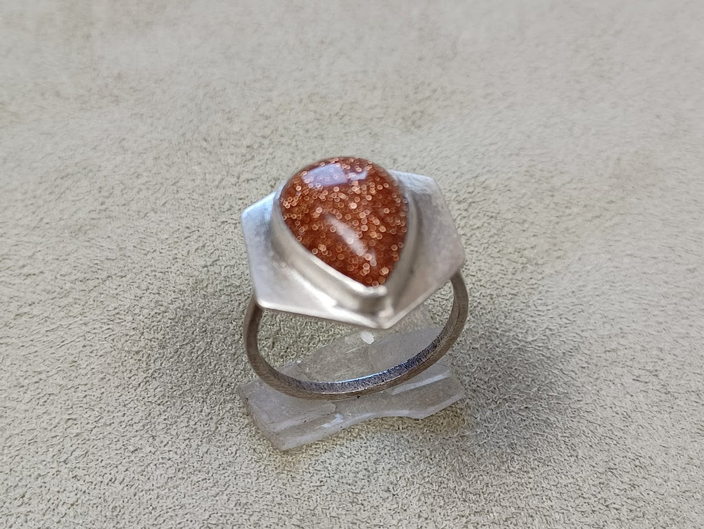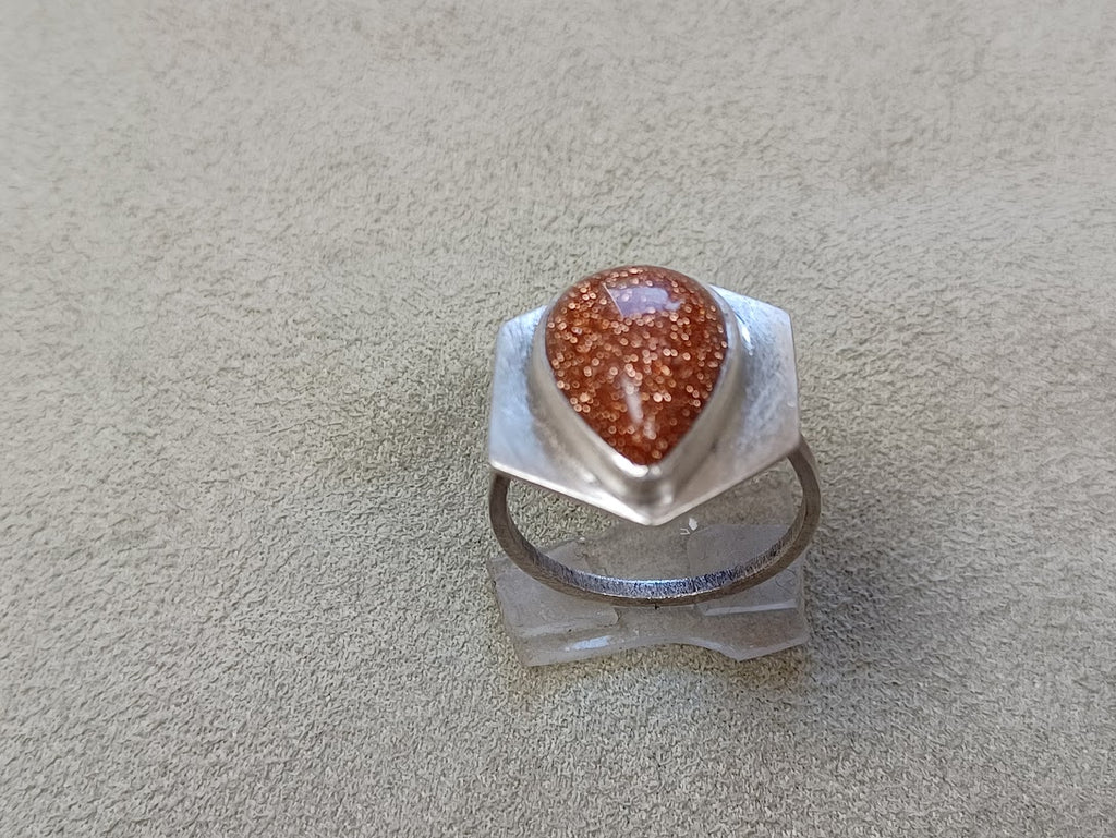 This handcrafted sterling silver ring features a striking goldstone stone, known for its warm, glittering appearance and natural beauty. Each piece is meticulously crafted by skilled artisans using premium sterling silver, ensuring durability and timeless elegance. The goldstone's distinctive sparkle catches light beautifully, making it a standout accessory for any occasion. Custom orders welcome—similar designs can be created to your specifications. To request a personalized ring, send your preferred image and desired size to info@athenasmith.com, and our team will work with you to bring your vision to life. A perfect blend of artisanal craftsmanship and natural stone beauty.